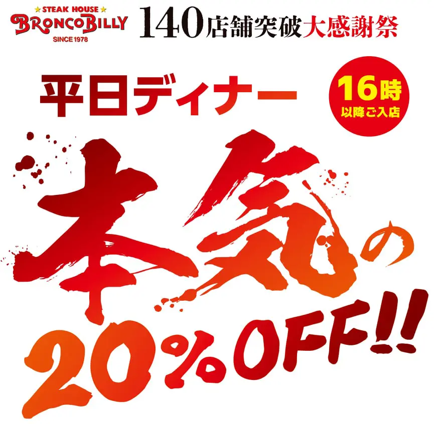 2025年10月20日(月)からブロンコビリー「140店舗突破 大感謝祭」がスタートいたします!