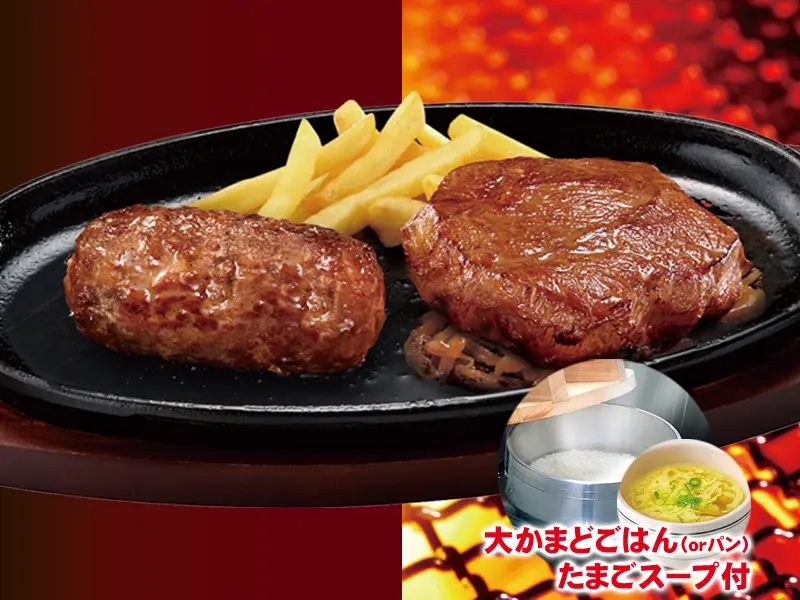 ◆ブロンコおじさんのこだわり炭焼きがんこハンバーグ&炭焼きやわらかランチステーキ