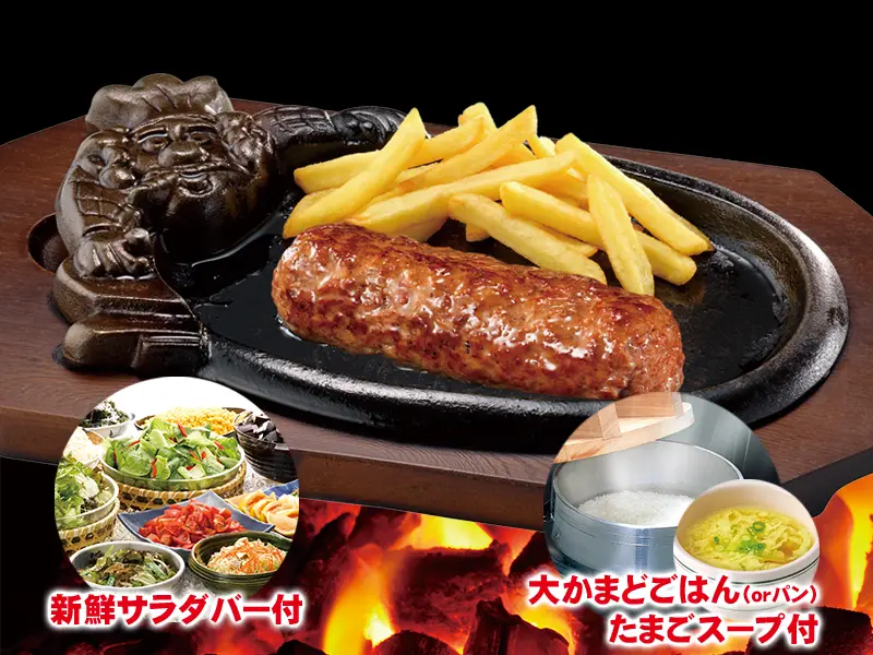 ◆ブロンコおじさんのこだわり炭焼きがんこハンバーグランチ